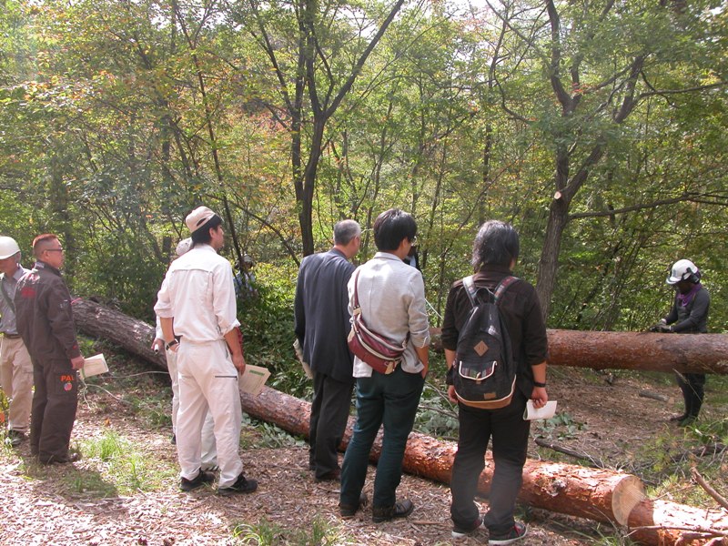 上田市東山の被害木を伐採する際に見学会をおこない、長野大学の生徒さん達をはじめ市民の方にご参加いただきました。